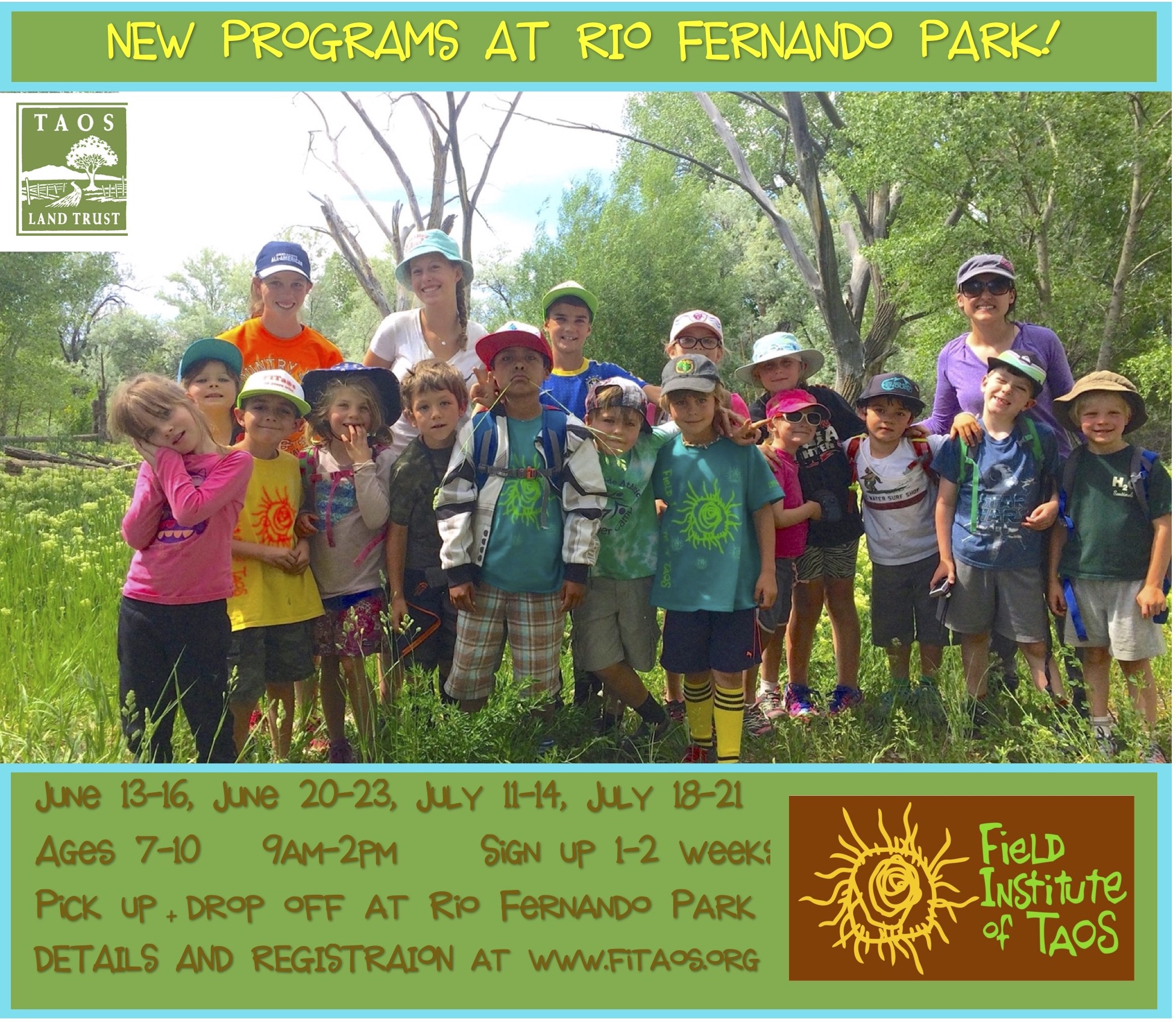 4 weeks at Rio Fernando Park in partnership with Taos Land Trust (on-site; no transportation) Ages 7-10. FREE SESSIONS THANKS TO A GENEROUS GRANT!